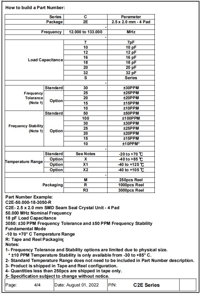 | C2E-50.000-10-1530-X-R | Aker晶振 | Crystal 50MHz ±15ppm (Tol) ±30ppm (Stability) 10pF FUND 70Ohm Automotive 4-Pin SMD T/R |