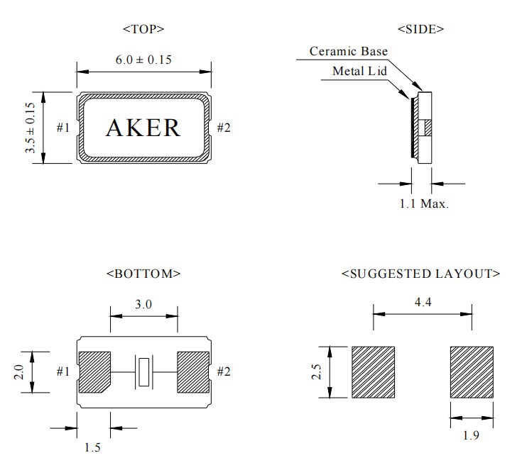 外形尺寸:6.0x3.5mm 兩墊腳貼片晶振