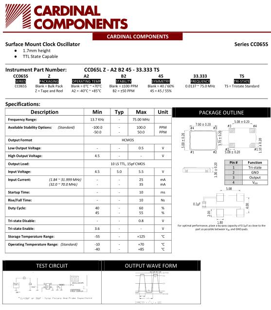 Cardinal晶振公司專業開發并生產石英晶體,OSC晶振,溫補晶振,石英晶體諧振器等時鐘頻率元件,并且卡迪納爾晶振在該領域里獲得巨大的成就和貢獻.卡迪納爾晶振,CC065S晶振,CC065LZ-A2B245-26.000TS晶振.