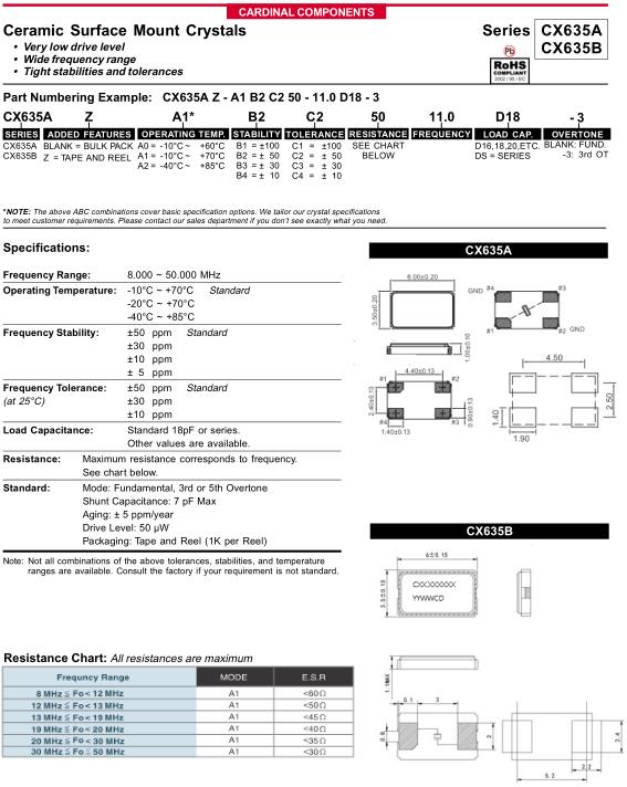 Cardinal晶振,CX635A晶振,CX635AZ-A1B2C250-11.0D183晶振,貼片晶振本身體積小,超薄型石英晶體振蕩器,特別適用于有目前高速發展的高端電子數碼產品,因為晶振本身小型化需求的市場領域,小型,薄型是對應陶瓷振蕩器(偏差大)和普通的石英晶體振蕩器(偏差小)的中間領域的一種性價比較出色的產品.產品廣泛用于筆記本電腦,無線電話,衛星導航SSD,USB,Blu-ray等用途,符合無鉛焊接的高溫回流焊曲線特性.