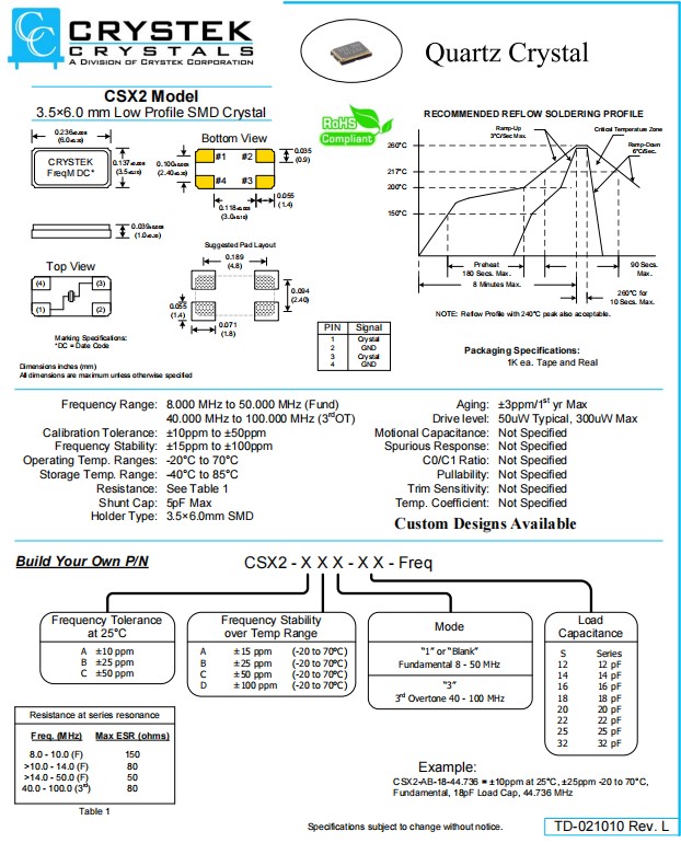 Crystek無源晶振,CSX2-CB1-16-22.5792MHz,CSX2-BA3-20-44.736MHz,6G藍牙晶振,參數表