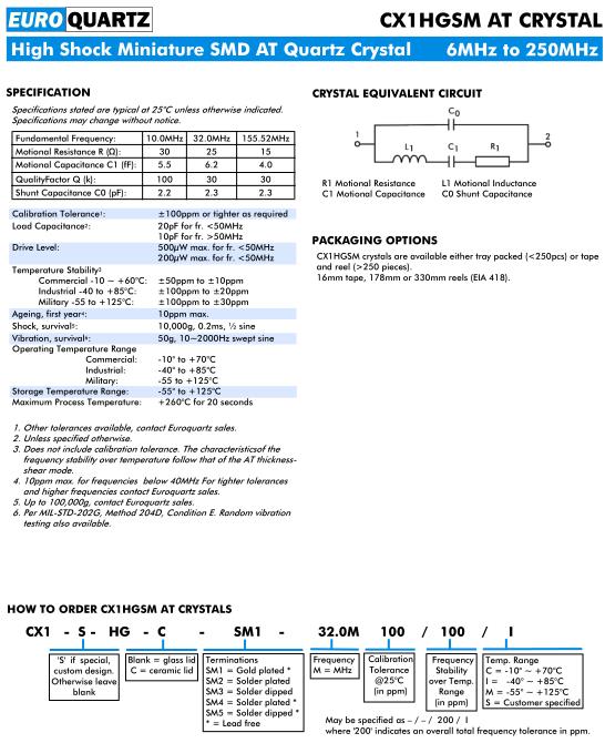 Euroquartz晶振,CX1HGSMAT晶振,CX1SHGCSM1-32.0M100/100/I晶振,貼片晶振本身體積小,超薄型石英晶體振蕩器,特別適用于有目前高速發展的高端電子數碼產品,因為晶振本身小型化需求的市場領域,小型,薄型是對應陶瓷振蕩器(偏差大)和普通的石英晶體振蕩器(偏差小)的中間領域的一種性價比較出色的產品.產品廣泛用于筆記本電腦,無線電話,衛星導航SSD,USB,Blu-ray等用途,符合無鉛焊接的高溫回流焊曲線特性.