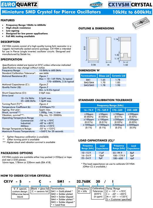 Euroquartz晶振,CX1VSM晶振,CX1VSC-SM1-32.768K-30/I晶振,貼片晶振本身體積小,超薄型石英晶體振蕩器,特別適用于有目前高速發展的高端電子數碼產品,因為晶振本身小型化需求的市場領域,小型,薄型是對應陶瓷振蕩器(偏差大)和普通的石英晶體振蕩器(偏差小)的中間領域的一種性價比較出色的產品.產品廣泛用于筆記本電腦,無線電話,衛星導航SSD,USB,Blu-ray等用途,符合無鉛焊接的高溫回流焊曲線特性.