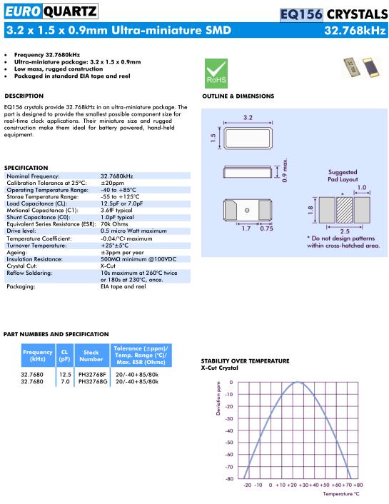 在一個(gè)不同擴(kuò)張系數(shù)電路板(環(huán)氧玻璃)上焊接陶瓷封裝石英晶振時(shí),在溫度長(zhǎng)時(shí)間重復(fù)變化時(shí)可能導(dǎo)致端子焊接部分發(fā)生斷裂,請(qǐng)事先檢查焊接特性。Euroquartz晶振,EQ156晶振,32.7680KHZ-12.5pF-PH32768F-20/-40+85/80k晶振.