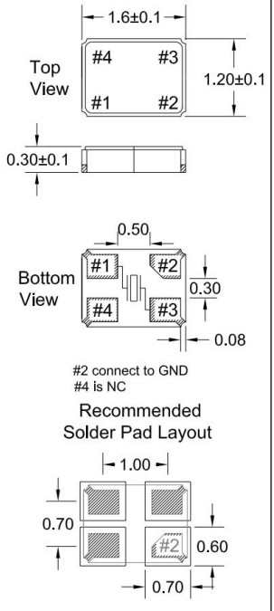 FOX超小型晶振,FC0BSECGM56.0-T3,FX1612B石英水晶振動子,尺寸圖