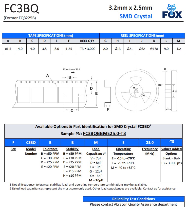 | FQ3225BR-25.000 | Fox晶振 | FQ3225B | 25MHz | ±50ppm |