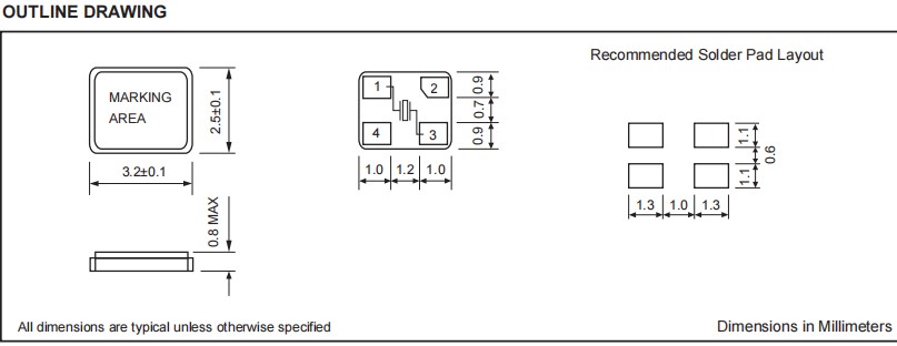 ●符合RoHS標(biāo)準(zhǔn)(無鉛),超小型設(shè)計(jì)(3.2x2.5x0.8mm)