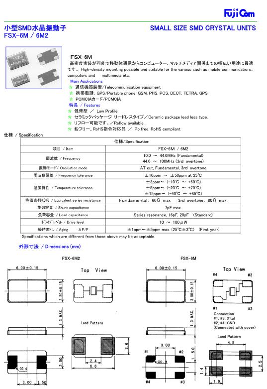 Fujicom晶振,FSX-6M晶振,6035mm晶振,小型貼片石英晶振,外觀尺寸具有薄型表面貼片型石英晶體振蕩器,特別適用于有小型化要求的市場(chǎng)領(lǐng)域,比如智能手機(jī),無(wú)線藍(lán)牙,平板電腦等電子數(shù)碼產(chǎn)品.晶振本身超小型,薄型,重量輕,晶體具有優(yōu)良的耐環(huán)境特性,如耐熱性,耐沖擊性,在辦公自動(dòng)化,家電相關(guān)電器領(lǐng)域及Bluetooth,WirelessLAN等短距離無(wú)線通信領(lǐng)域可發(fā)揮優(yōu)良的電氣特性,滿足無(wú)鉛焊接的回流溫度曲線要求.