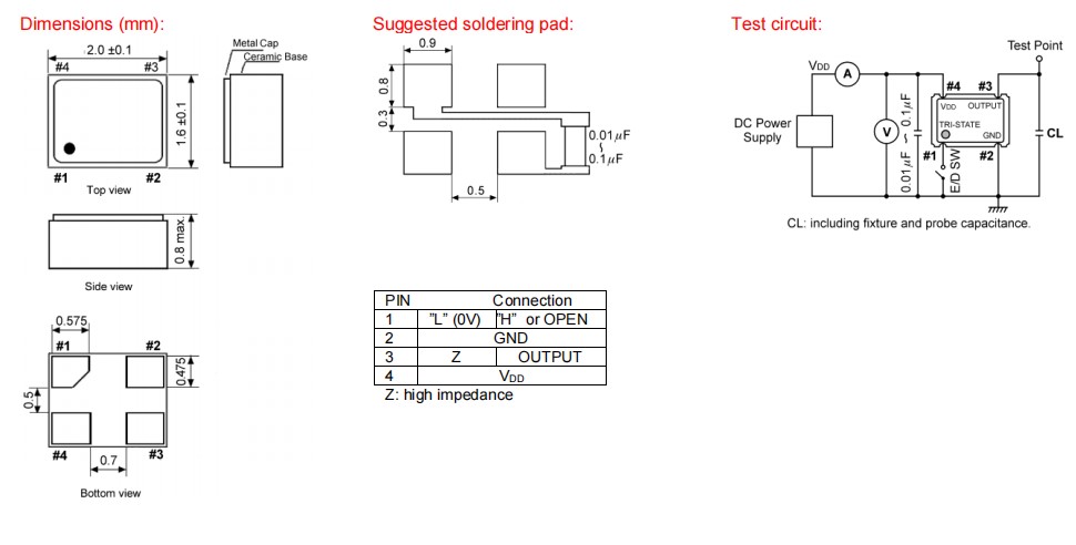 | tri-state control voltage (Pin#1) | VIH: VDD x 0.7 min.; VIL: VDD x 0.3 max. | |||||||||