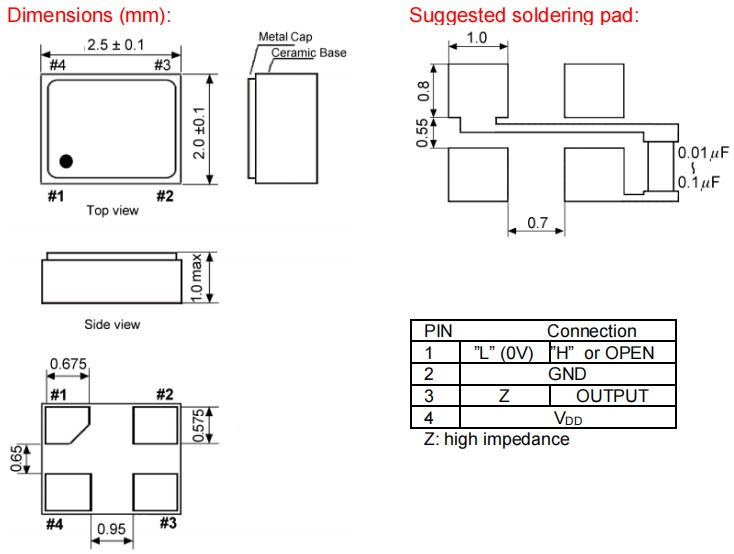 | tri-state control voltage (Pin#1) | VIH: VDD x 0.7 min.; VIL: VDD x 0.3 max. | |||||||