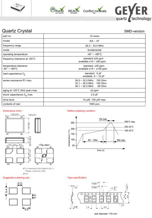 Geyer晶振,KX-3T晶振,無源四腳晶振,貼片晶振本身體積小,超薄型石英晶體振蕩器,特別適用于有目前高速發展的高端電子數碼產品,因為晶振本身小型化需求的市場領域,小型,薄型是對應陶瓷振蕩器(偏差大)和普通的石英晶體振蕩器(偏差小)的中間領域的一種性價比較出色的產品.產品廣泛用于筆記本電腦,無線電話,衛星導航SSD,USB,Blu-ray等用途,符合無鉛焊接的高溫回流焊曲線特性.