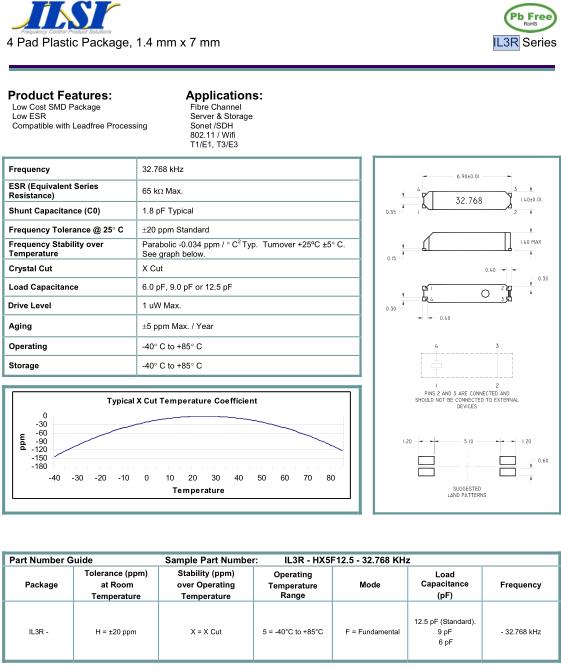 ILSI晶振,IL3R晶振,IL3R-HX5F12.5-32.768KHz晶振,貼片表晶32.768K系列具有超小型,薄型,質(zhì)地輕的表面貼片音叉型石英晶體振蕩器,晶振產(chǎn)品本身具備優(yōu)良的耐熱性,耐環(huán)境特性,在辦公自動(dòng)化,家電領(lǐng)域,移動(dòng)通信領(lǐng)域可發(fā)揮優(yōu)良的電氣特性,符合無鉛標(biāo)準(zhǔn),滿足無鉛焊接的回流溫度曲線要求,金屬外殼的石英晶振使得產(chǎn)品在封裝時(shí)能發(fā)揮比陶瓷晶振外殼更好的耐沖擊性能.