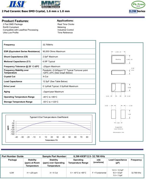 ILSI晶振,IL3W晶振,IL3W-HX5F12.5-32.768KHz晶振,32.768K時鐘晶體具有小型,薄型,輕型的貼片晶振表面音叉型晶體振蕩器,產品具有優良的耐熱性,耐環境特性,可發揮晶振優良的電氣特性,符合RoHS規定,滿足無鉛焊接的高溫回流溫度曲線要求,金屬外殼的封裝使得產品在封裝時能發揮比陶瓷振蕩器外殼更好的耐沖擊性.