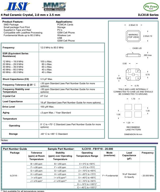 ILSI晶振,ILCX18晶振,ILCX18-FB1F18-20.000晶振
