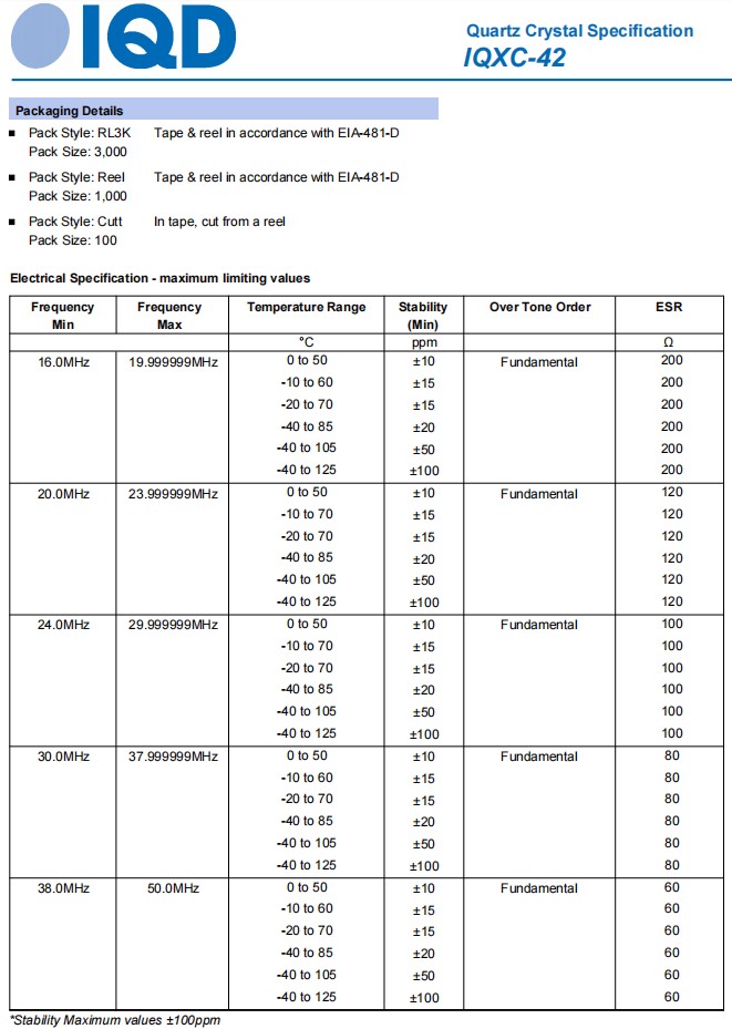 汽車電子6G晶振,IQXC-42,LFXTAL073170REEL,IQD超小型晶振,LFXTAL078377REEL,可穿戴設(shè)備晶振,參數(shù)表