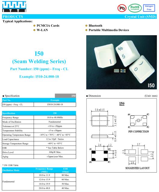 ITTI晶振,I50晶振,I510-24.000-18晶振,小型表面貼片晶振型,是標準的石英晶體振蕩器,適用于寬溫范圍的電子數碼產品,家電電器及MP3,MP4,播放器,單片機等領域.可對應8.000MHz以上的頻率,在電子數碼產品,以及家電相關電器領域里面發揮優良的電氣特性,滿足無鉛焊接的回流溫度曲線要求.