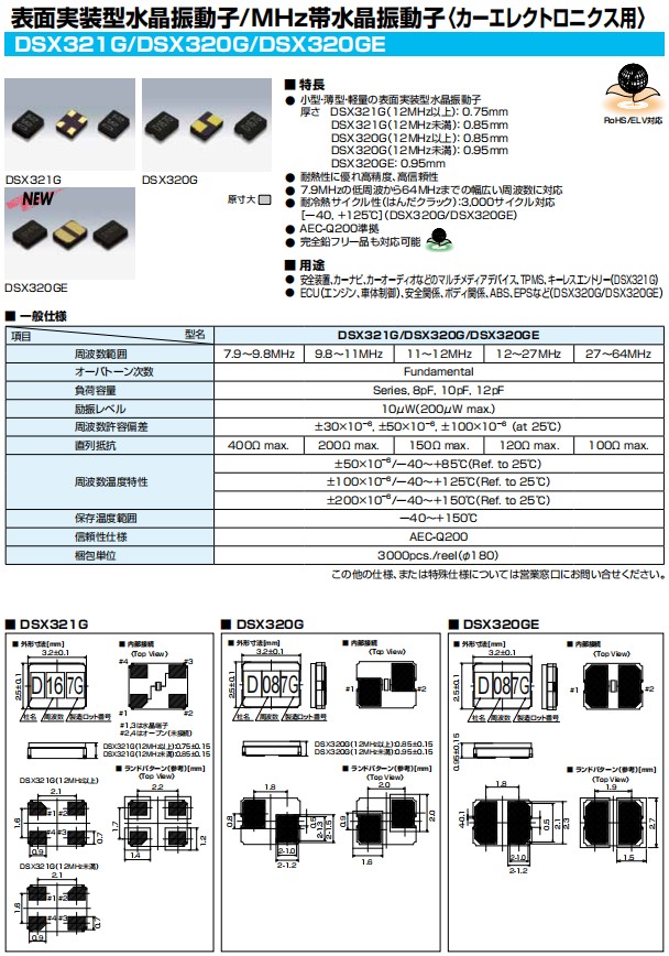 KDS超小型晶振,DSX320GE汽車導航晶振,1ZCT24000BD0A無源貼片晶振,3225mm晶振,耐高溫晶振