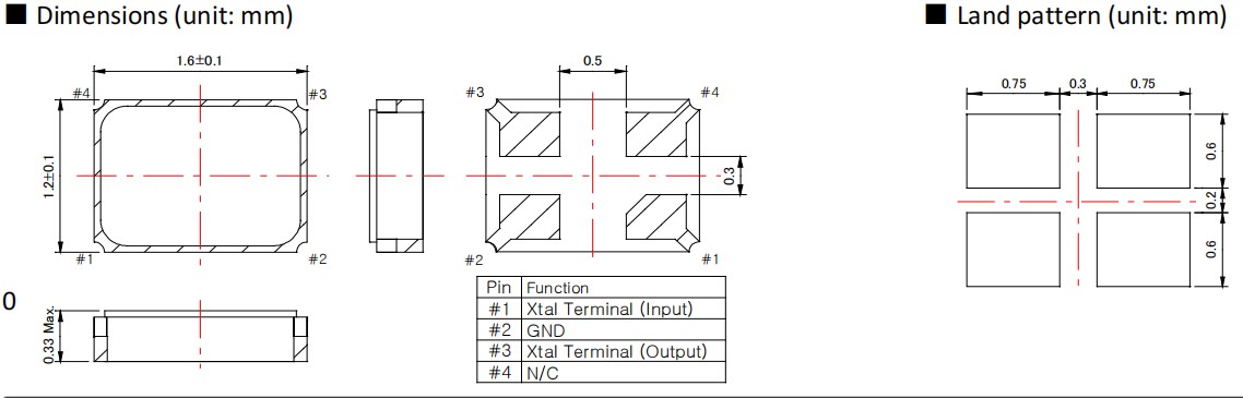 小體積尺寸:1.6 x 1.2 x 0.35(最大)mm的表面安裝石英晶振