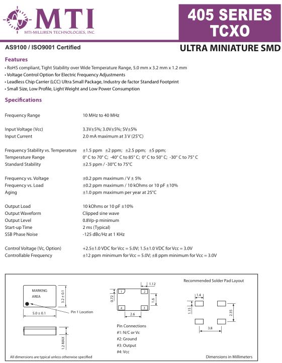| Control Voltage (Vc, Option) | +2.5±1.0 VDC for Vcc = 5.0V; 1.5±1.0 VDC for Vcc = 3.0V |