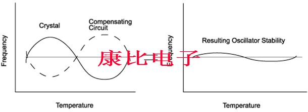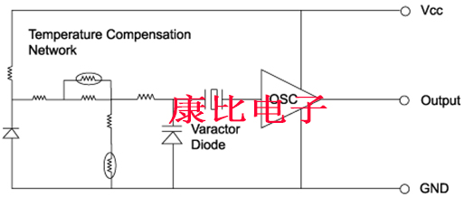 溫度穩(wěn)定性使用標(biāo)準(zhǔn)補(bǔ)償技術(shù),可以在-40℃至+85℃的溫度范圍內(nèi)實(shí)現(xiàn)約±1ppm的分?jǐn)?shù)穩(wěn)定性.在較窄的溫度范圍內(nèi)可以實(shí)現(xiàn)更好的穩(wěn)定性.除了最簡(jiǎn)單的TCXO晶振之外,所有技術(shù)都采用的實(shí)際技術(shù)是基于與晶振串聯(lián)使用的變?nèi)荻O管,如下所示: 電壓的變化引起變?nèi)荻O管的電容變化,導(dǎo)致振蕩頻率的變化.熱敏電阻網(wǎng)絡(luò)適用于晶體,使電壓隨溫度變化,從而補(bǔ)償晶體的頻率與溫度特性.由于每個(gè)TCXO要求其補(bǔ)償網(wǎng)絡(luò)與其單個(gè)晶體匹配,因此TCXO的成本與頻率與溫度規(guī)格的難度密切相關(guān).