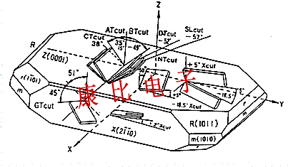 圖1和圖2示出了Z板石英晶體的取向角,其中對于最常使用的振動模式,晶體單元的第一頻率溫度系數在正常室溫附近變為零.