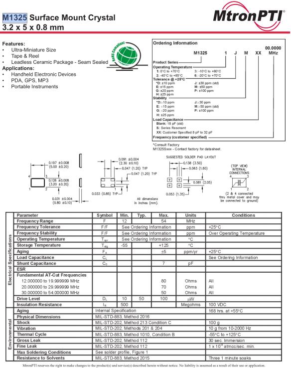MtronPTI Crystal麥特倫皮晶振公司成立于1965年.是高可靠性,應用設計和制造定制RF微波解決方案公司.MtronPTI晶振公司是LGL合資子公司,專業向市場供應優質的有源晶振,陶瓷諧振器,濾波器等元件,并得到廣大用戶的深度認可.MtronPTI晶振,M1325晶振,M13251JMXX26.0000MHz晶振.