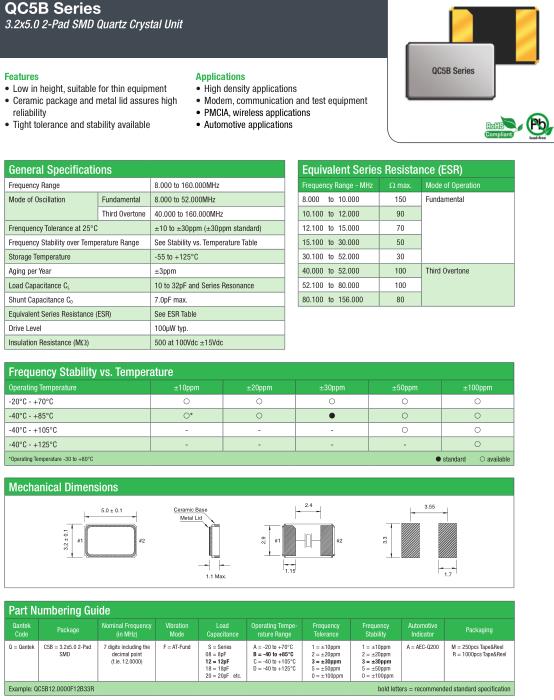 | General Specifications-QANTEK晶振 | QC5B晶振 | |