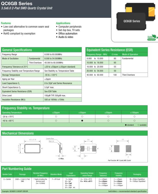 | General Specifications-QANTEK晶振 | QC6GB晶振 | |