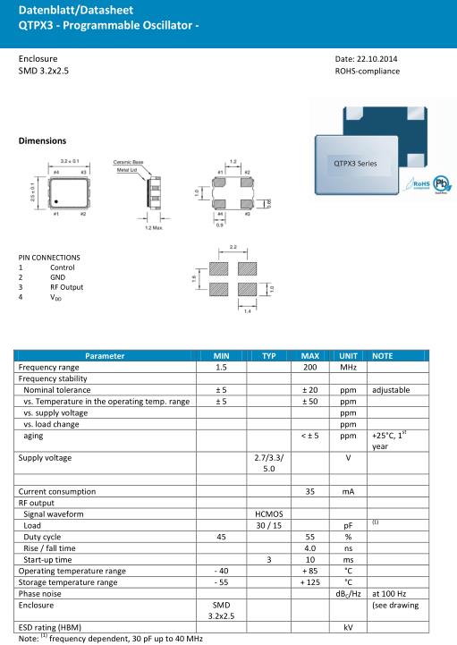 德國Quarztechnik Crystal(夸克晶振)公司成立已有50多年的歷史,在石英晶體振蕩器制造方面具有頗深的造詣.除此之外Quarztechnik晶振不僅生產晶體還研發生產溫補晶振,OSC晶振,有源晶振等元件,并做到價格低廉,性能優越.同時擁有龐大的生產力以及快速交付的能力.夸克晶振,QTPX3晶振,可編程振蕩器.