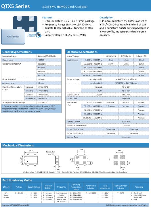 Quarztechnik Crystal集團成立至今已有50多年的歷史, Quarztechnik晶振并稱為夸克晶振,作為德國領(lǐng)先的頻率元件制造商,主要優(yōu)勢能對客戶提出的要求在短時間內(nèi)將客戶的需求變?yōu)楝F(xiàn)實,致力于向市場供應(yīng)優(yōu)質(zhì)的Quarztechnik有源晶振,SMD晶振,石英晶體振蕩器等元件,同時具有創(chuàng)新能力與超越自我的勇氣,在業(yè)界處于領(lǐng)先的位置,一直在創(chuàng)新,從未被超越的精神,使得Quarztechnik晶振在晶體行業(yè)一路輝煌.Quarztechnik晶振,QTX5晶振,QTX533B20.0000B15R晶振.