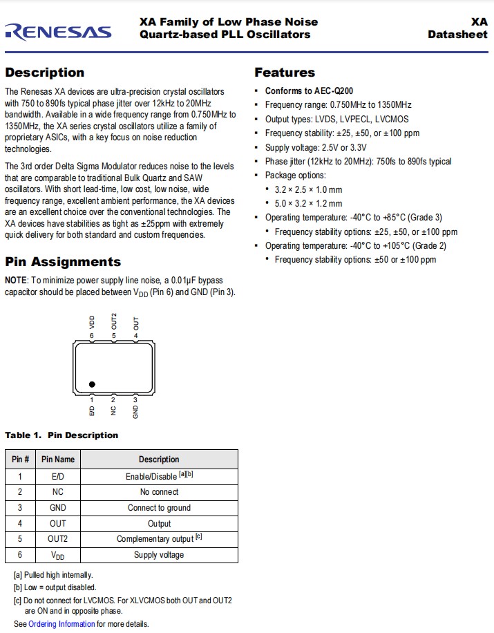 | XAL325033.333300K | Renesas晶振 | XTAL OSC XO 33.3333MHZ LVDS SMD | XA |