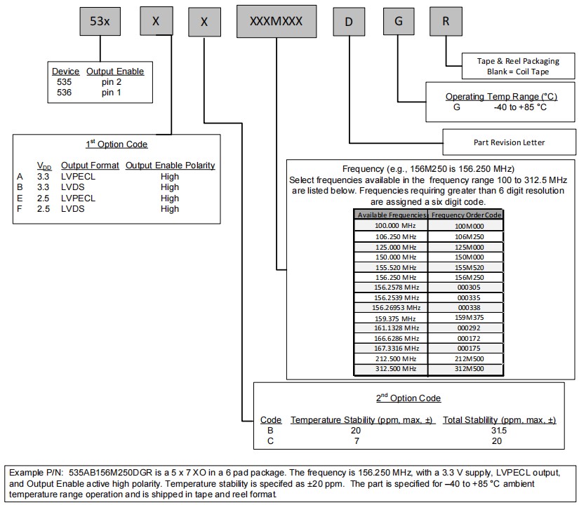 | 536AC000335DG | Skyworks晶振 | Si536 | 156.2539 MHz | LVPECL | 3.3V |