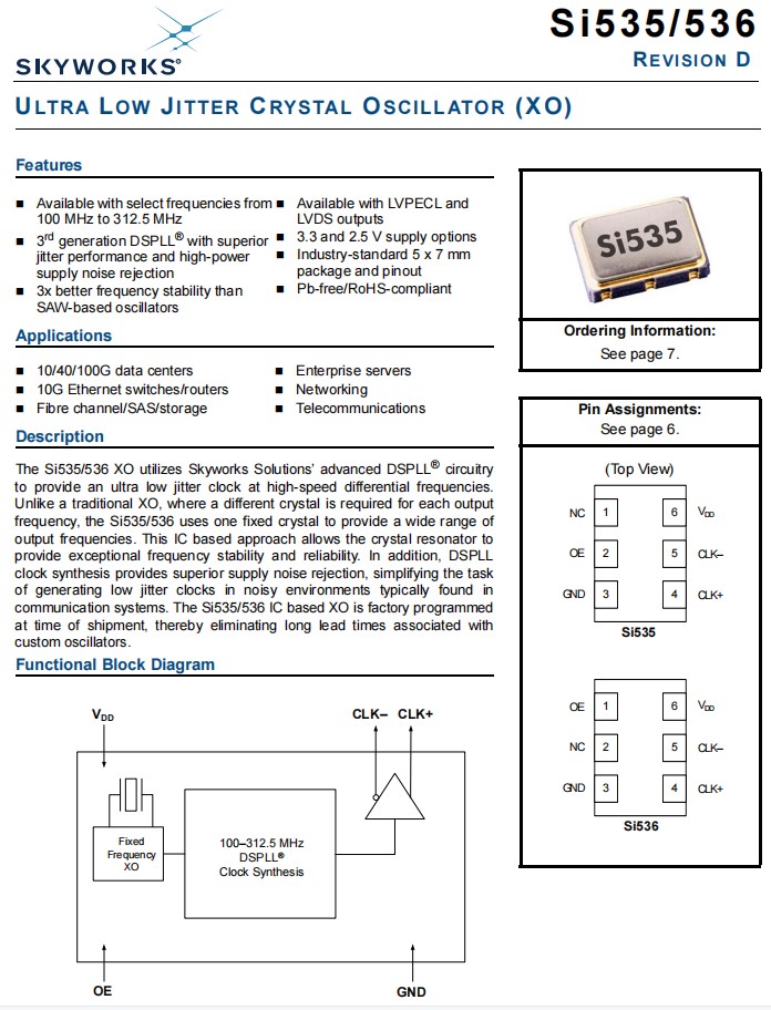 | 536EC159M375DGR | Skyworks晶振 | Si536 | 159.375 MHz | LVPECL | 2.5V |