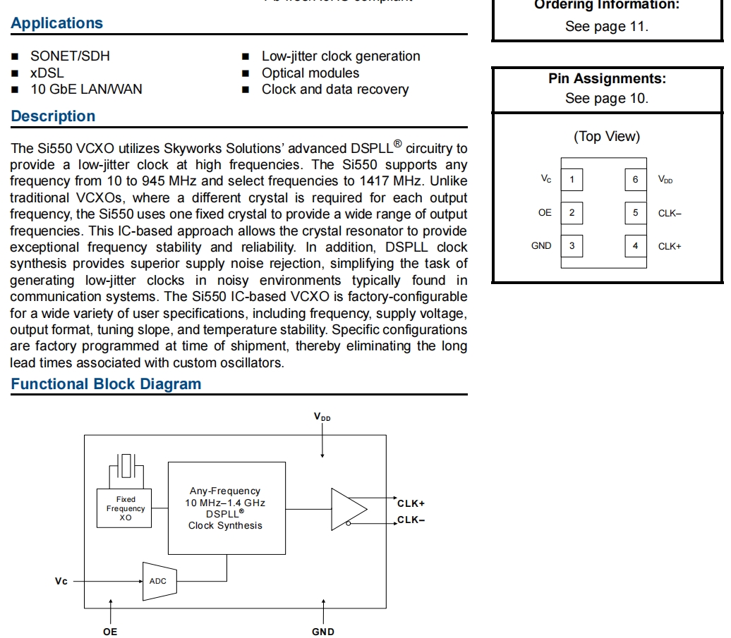 550AA300M000DGR,Si550光學模塊晶振,思佳訊LVPECL壓控晶振,尺寸7050mm,頻率300MHZ,輸出邏輯LVPECL,頻率穩定性100ppm,進口差分晶振,LVPECL差分晶振,壓控差分晶振,壓控晶體振蕩器,VCXO壓控晶振,有源差分振蕩器,貼片差分振蕩器,7050mm差分晶體振蕩器,OSC差分晶振,六腳貼片差分晶振,300MHZ高頻差分晶振,低功耗差分晶振,低抖動差分晶振,低耗能差分晶振,低相位差分晶振,光學模塊差分晶振,娛樂設備差分晶振,無線網絡差分晶振,電信差分晶振,測試測量差分晶振,儀器設備晶振,小型設備差分晶振,路由器差分晶振,高性能差分晶振,低電壓差分晶振,具有高性能低電壓的特點.