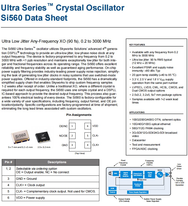 Skyworks差分晶振,560BAA125M000BCG,Si560路由器晶振