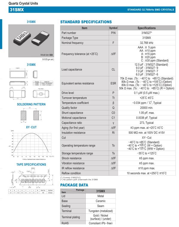 12.5 pF : 31M327 (Standard) 9.0 pF : 31M327-9 7.0 pF : 31M327-7 6.0 pF : 31M327-6 |