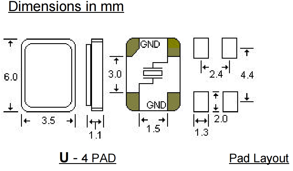 STD四腳貼片晶振\醫(yī)療設(shè)備6G晶振\AAU60M000000FHE18H 尺寸圖