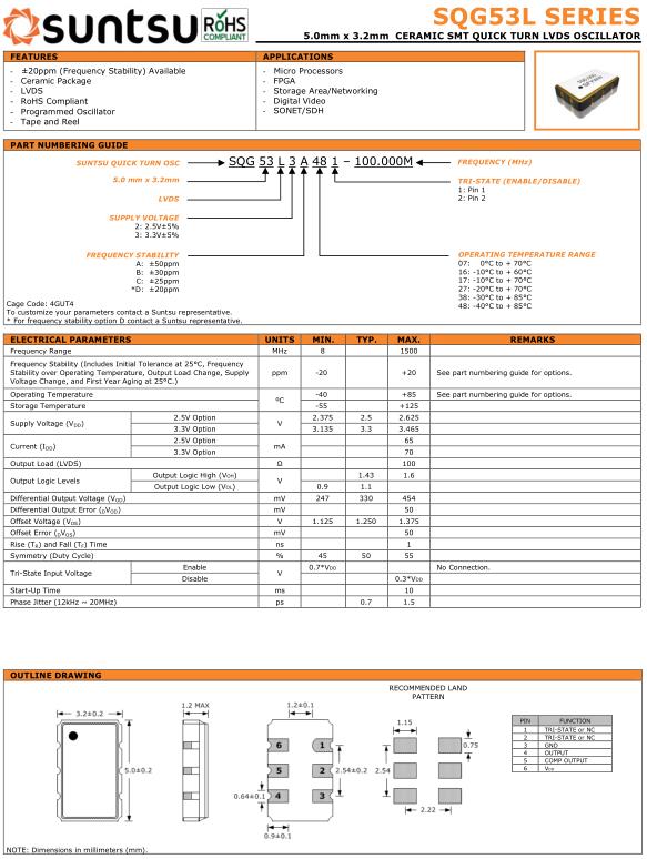 Suntsu晶振通過自身的努力,不斷創新的精神,生產大量的優質晶振產品,包括石英晶體振蕩器,溫補晶振,OSC差分晶振等元件.松圖晶振,SQG53L晶振,SQG53L3A481-16.000M晶振.