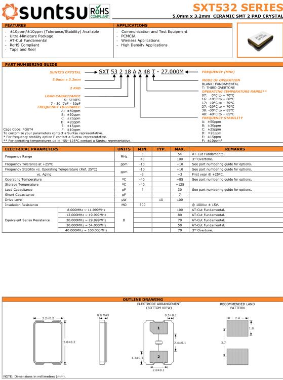 | 30.000MHz ~ 54.000MHz | 50 | AT-Cut Fundamental. | ||||