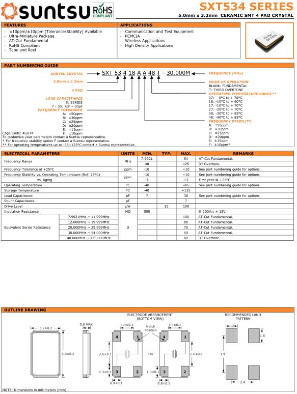 | 30.000MHz ~ 54.000MHz | 50 | AT-Cut Fundamental. | ||||