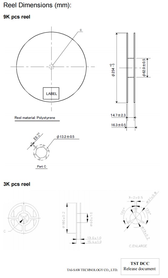TST無(wú)源晶振TZ1006AE,32.768K石英晶體諧振器,3215貼片晶振,尺寸圖