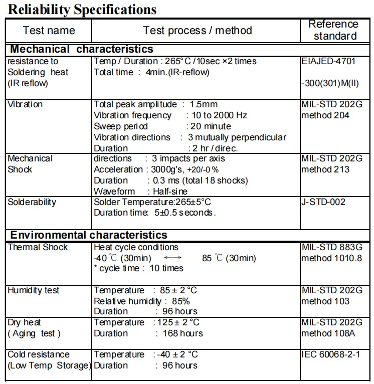 | Motional Capacitance (C1) | 5.0 fF min ; 7.0 fF typ ; 9.0 fF max. |