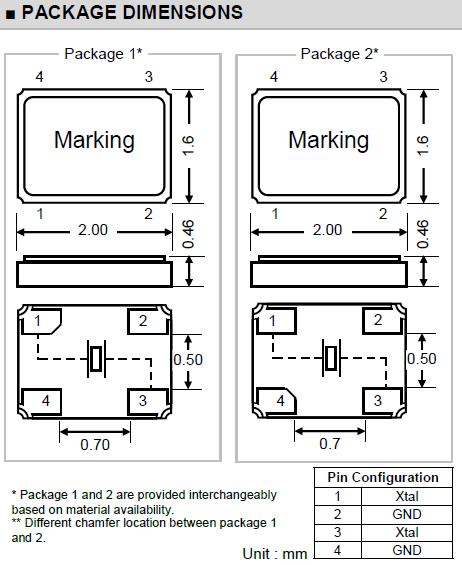 | DRIVE LEVEL | 100µW ~ 200µW max. |