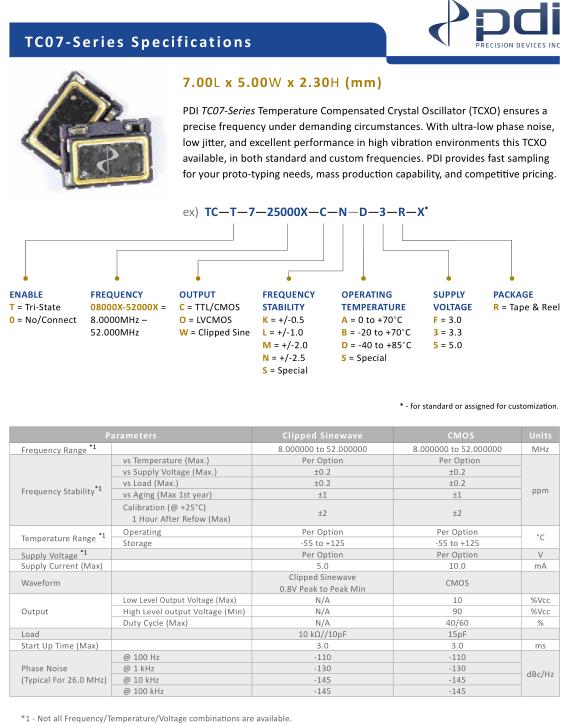 TCH系列溫度補(bǔ)償晶體振蕩器(TCXO)可在極端條件下的苛刻應(yīng)用中確保精確的頻率和極高的穩(wěn)定性。TCH系列可在高振動和高溫環(huán)境下提供出色的相位噪聲,低抖動和卓越性能。該TCXO采用堅(jiān)固的5引腳通孔封裝,標(biāo)準(zhǔn)和定制頻率范圍為1.000MHz至50.000 MHz。TCH提供各種電源電壓,穩(wěn)定性和溫度范圍,穩(wěn)定性低至0.5ppm,工作溫度為55°C至+ 125°C。TCH系列可提供各種電源電壓; 或者5.0v,12.0v和15.0v,提供低功率電流,包含低功率CMOS輸出。