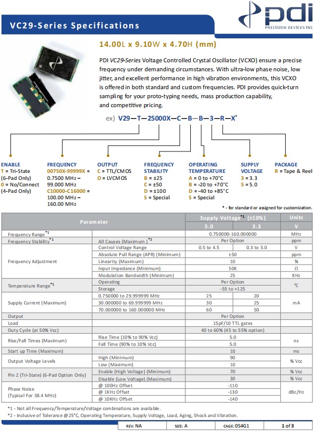 Wi2wi壓控晶振,V29-T-C12000-C-B-D-3-R-X,VC29石英晶振,參數(shù)表