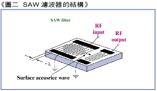 濾波器的種類很多,除了利用表面聲波(SAW濾波器)外,尚有使用誘電體陶瓷共振器的誘電體濾波器,使用壓電陶瓷基地的陶瓷濾波器,在陶瓷板上以厚膜印刷制作多層LC而成的基層LC濾波器,以及使用水晶基板的MCF等,各依所對應之頻率范圍,頻率響應特性,價格之不同而在使用上有所分別