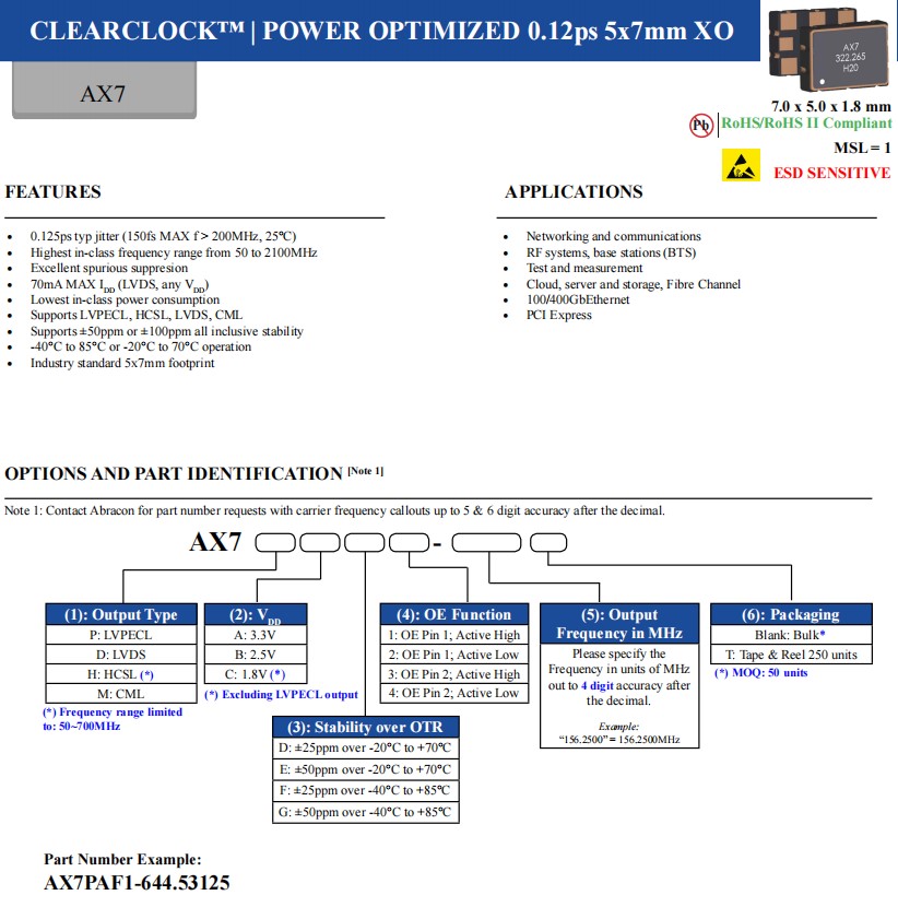 更多>>ClearClock振蕩器AX7PAF1-644.53125為6G通信提供解決方案