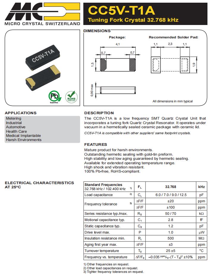更多>>微晶發(fā)布新興的輕薄型32.768K音叉晶體CC5V-T1A-32.768kHz-6pF-20PPM-TA-QC