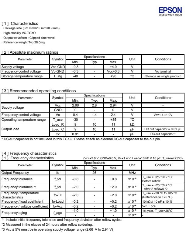 | X1G004201002000 | TG-5006CE | 26.000000 MHz | 3.20 x 2.50 x 0.90 mm | 2.660 to 2.940 V | +/-2.0 ppm | -30 to +85 °C | +/-2.00 ppm |