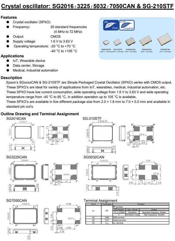 這些SPXO的可在五種不同的包裝尺寸從2.0 × 1.6毫米到7.0 × 5.0毫米,